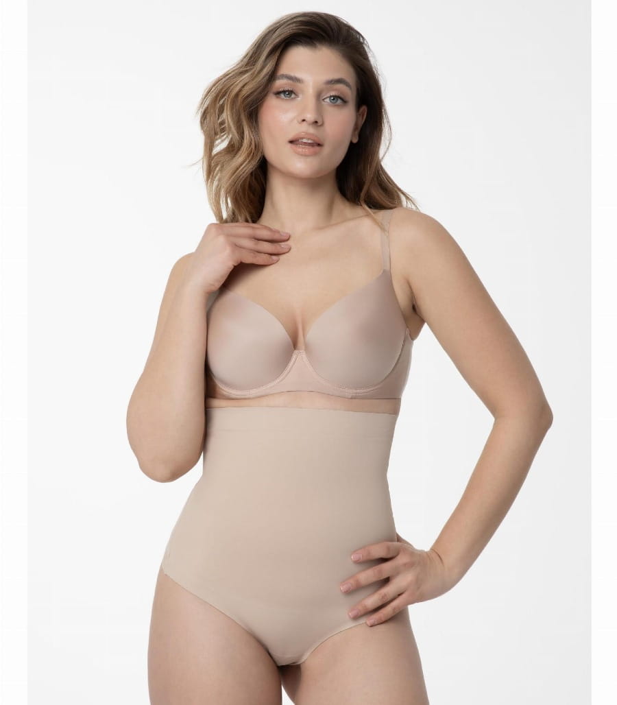 Specjalne obszary wyszczuplające zostały zaprojektowane w celu modelowania sylwetki oraz spłaszczania brzucha, co pozwala na optyczne wyszczuplenie i sprawia, że każda stylizacja lepiej się układa. W trosce o higienę i komfort, w kroku znajduje się bawełniana wkładka.