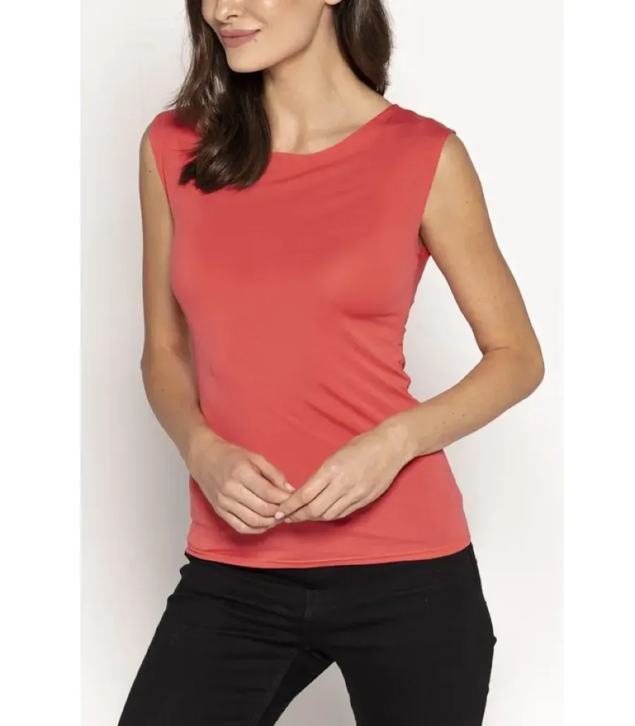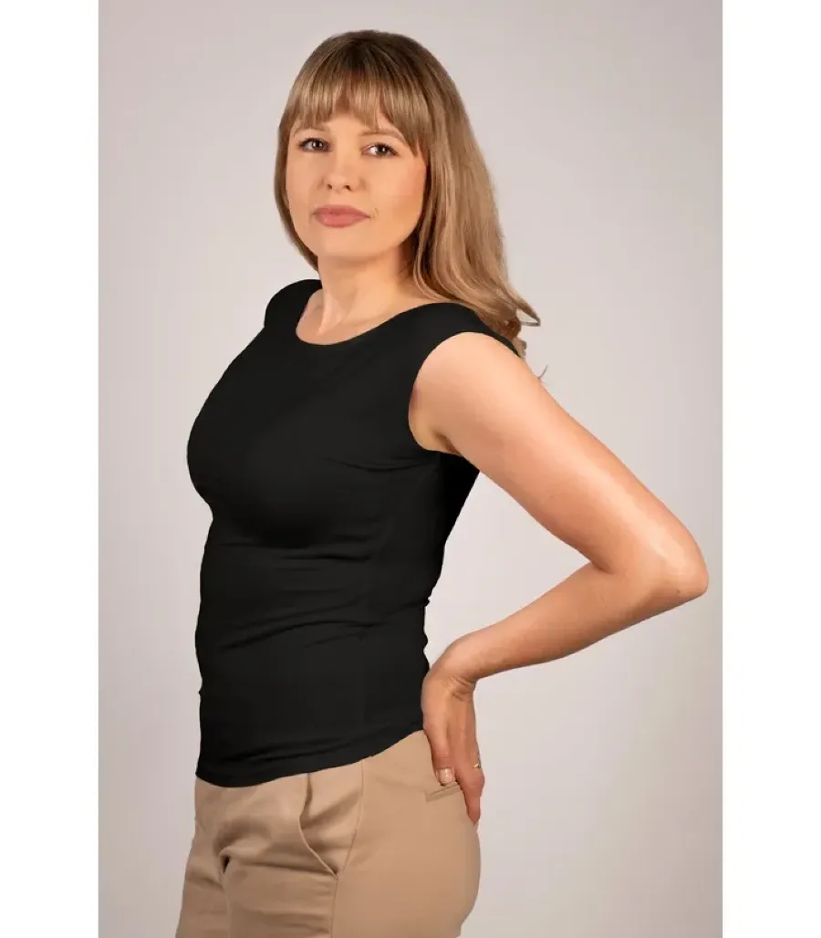 Wiskozowa bluzka bez rękawów Indi polskiej firmy Babell, to idealne rozwiązanie dla osób pragnących połączyć komfort z minimalistycznym stylem. Wykonana z miękkiej, elastycznej dzianiny wiskozowej (94% wiskoza, 6% elastan), bluzka doskonale przylega do ciała, a jej przyjazny dla skóry materiał zapewnia optymalną oddychalność.