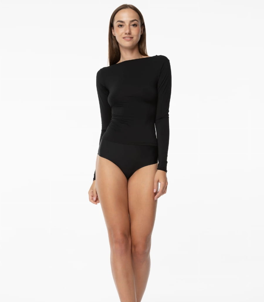 Bluzka z długim rękawem SIMPLE LONGSLEEVE polskiej firmy Julimex to gładki i elastyczny model w kolorze czarnym lub beżowym, który doskonale wpisuje się w elegancki styl. Wykonana z przyjemnej w dotyku dzianiny, bluzka delikatnie otula ciało, zapewniając komfort i pewność siebie przez cały dzień.