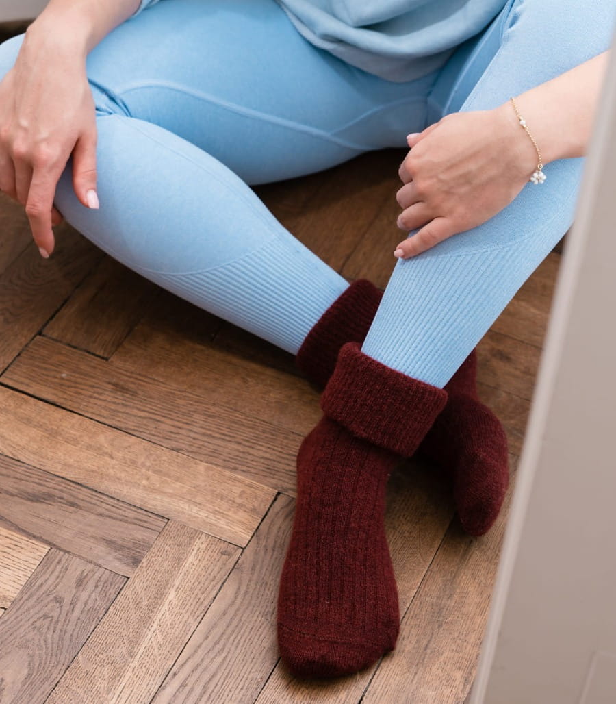 Wykonane w technologii bezszwowej, gwarantują maksymalny komfort noszenia bez ucisku. Prążkowany wzór oraz delikatny ściągacz zapewniają idealne dopasowanie i brak odgnieceń, a wysokogatunkowa mieszanka (50% wełny alpaki, 36,5% poliamidu, 13% wełny, 0,5% elastanu) sprawia, że są zarówno miękkie, jak i wytrzymałe na codzienne użytkowanie.