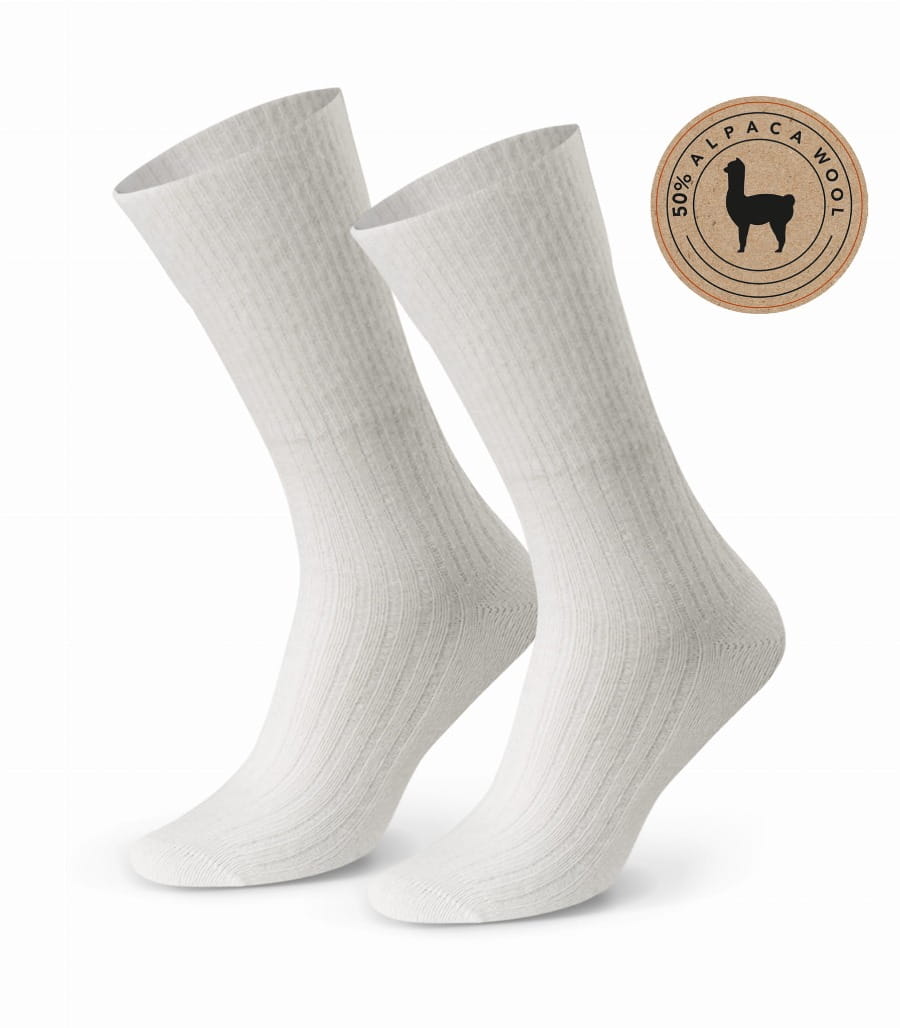 Skarpety z 50% wełny alpaki art. 044 to połączenie najwyższej jakości naturalnych materiałów, zapewniających ciepło, wygodę i trwałość. Te prążkowane skarpety do łydki zostały wykonane z mieszanki włókien, w której połowa stanowi delikatna wełna alpaki, ceniona za swoje unikalne właściwości termiczne i higieniczne.