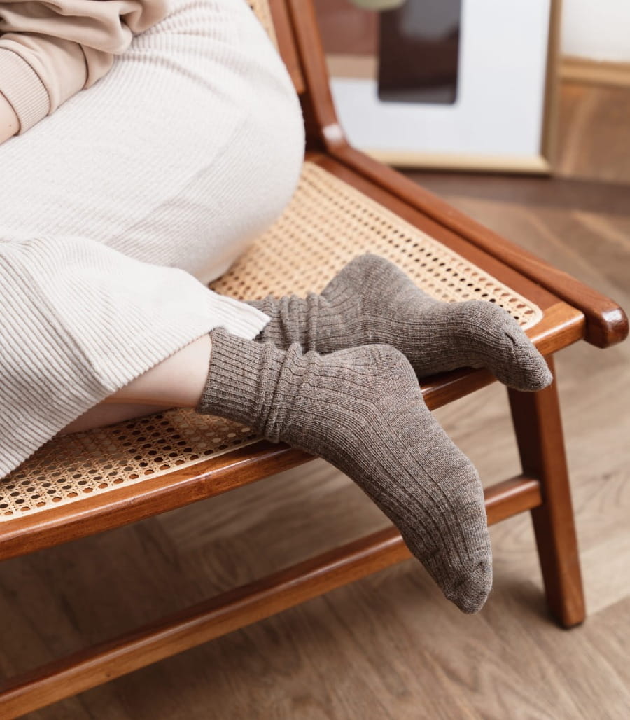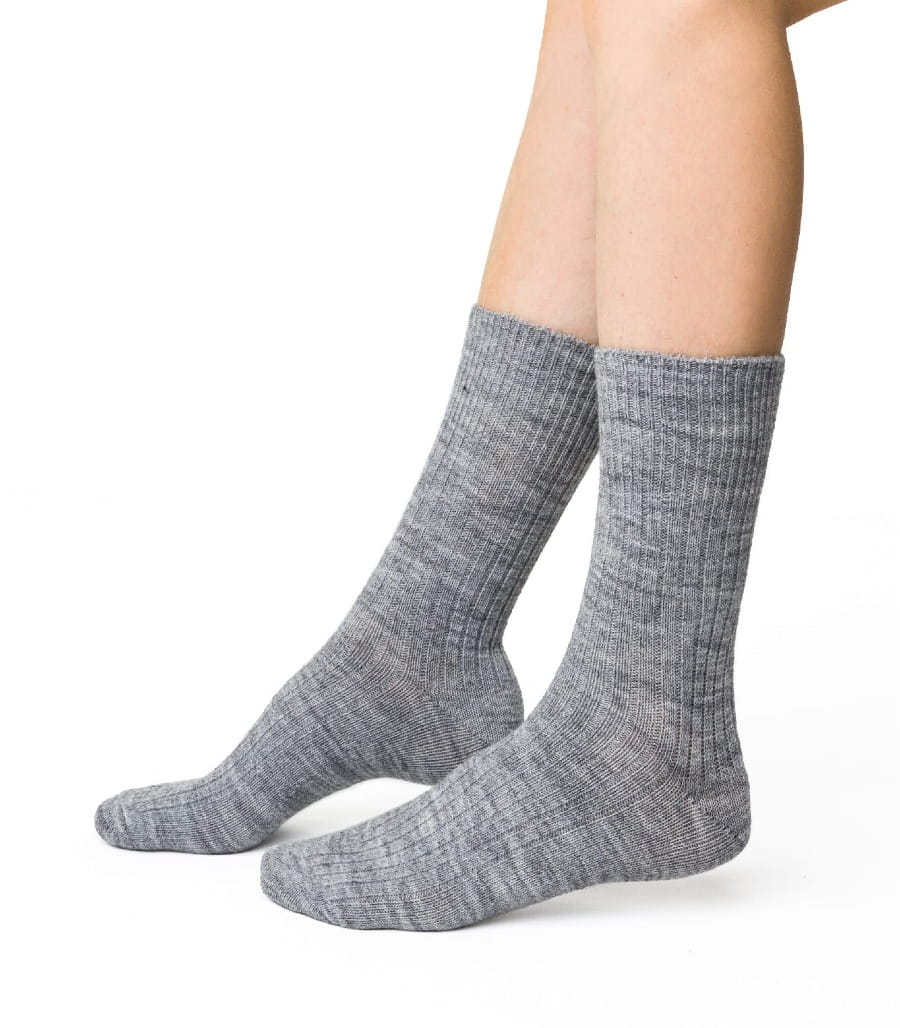 Naturalne właściwości wełny alpaki sprawiają, że skarpety skutecznie izolują od chłodu, odprowadzają wilgoć i pozwalają skórze oddychać, czyniąc je doskonałym wyborem na zimowe i jesienne dni. Dostępne kolory: czarny, granatowy, jasny szary, szary melanż, melanż beż.