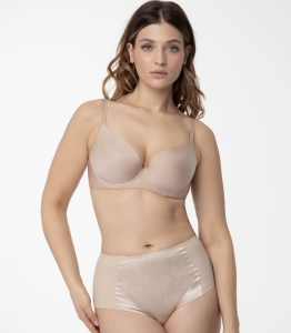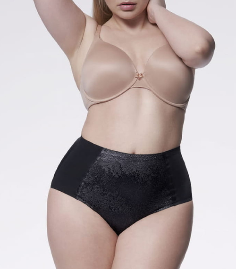 Uszyte ze zwięzłej dzianiny, figi AGAT oferują lekko modelujące właściwości, dzięki czemu idealnie sprawdzą się jako codzienna bielizna. Dodatkowym atutem jest naszyty z przodu panel z lśniącym, żakardowym deseniem, który dodaje bieliźnie elegancji i intrygującego charakteru.