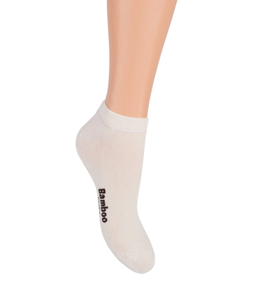 Wykonane z 76% włókna bambusowego, gwarantują doskonałe właściwości termoregulacyjne, odprowadzają wilgoć i zapewniają uczucie świeżości przez cały dzień. Dodatki poliamidu (19%) oraz elastanu (5%) sprawiają, że są elastyczne, trwałe i idealnie dopasowujące się do stóp, nie uciskając ich.