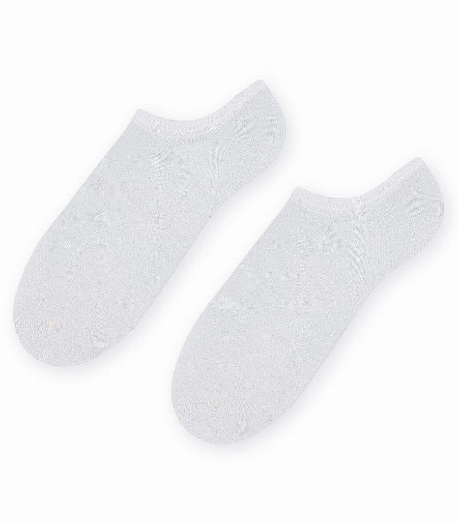 Włókno metalizowane wplecione w strukturę daje subtelny, srebrny połysk lurex, dodając elegancji i blasku. Bezszwowa konstrukcja i delikatny ściągacz gwarantują pełen komfort noszenia bez ucisku. Model przed kostkę doskonale dopasowuje się do stopy i idealnie układa pod obuwiem.