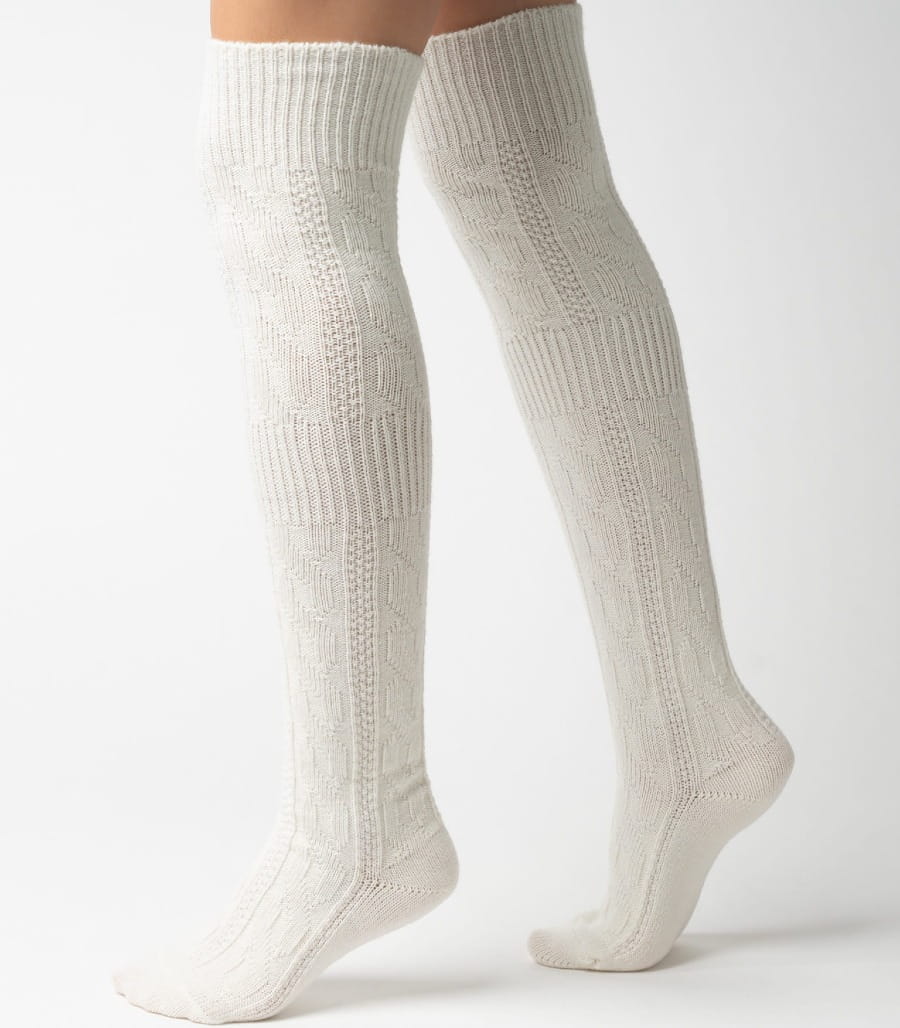 Model za kolano, w klasycznych kolorach, ze wzorem w warkocz