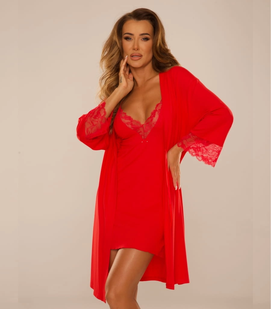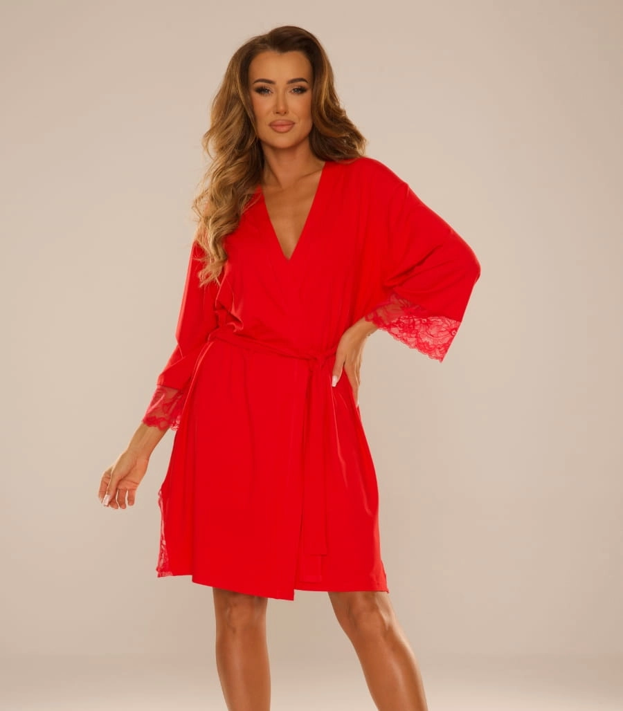 Elegancki i zmysłowy szlafrok damski Nadia 041 z koronką od polskiej firmy DeLafense to idealna propozycja dla kobiet ceniących sobie styl i komfort. Uszyty z wysokiej jakości wiskozy, w klasycznych kolorach: czarnym i czerwonym, doskonale dopasowuje się do sylwetki, podkreślając jej atuty.