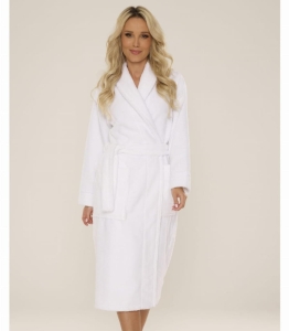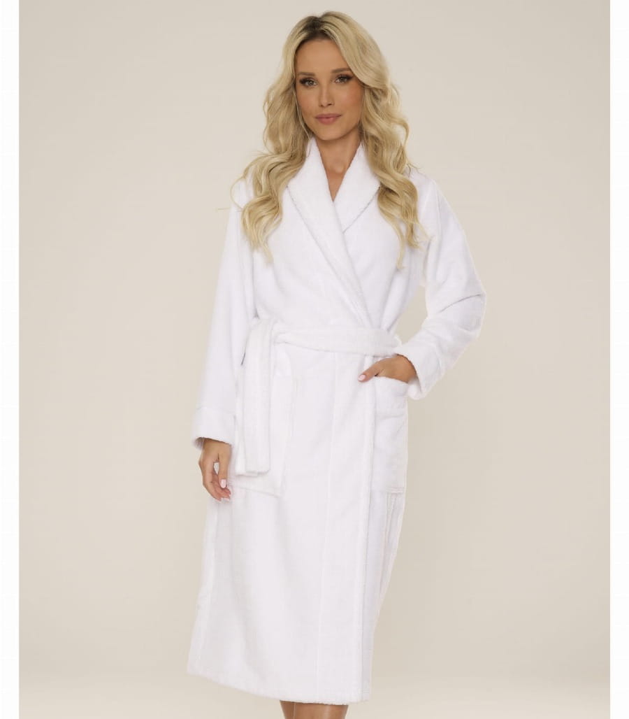 Szlafrok MANUELA 709 polskiej firmy DeLafense doskonale sprawdzi się jako komfortowa narzutka po kąpieli lub stylowy element domowej garderoby. Model dostępny jest w klasycznym kolorze białym oraz w rozmiarach S, M, L, XL, XXL. Zamów już dziś i ciesz się wygodą oraz eleganckim stylem każdego dnia!