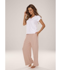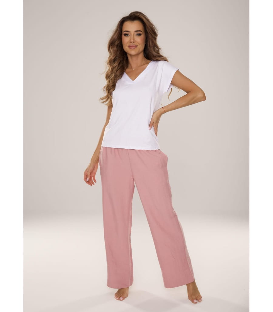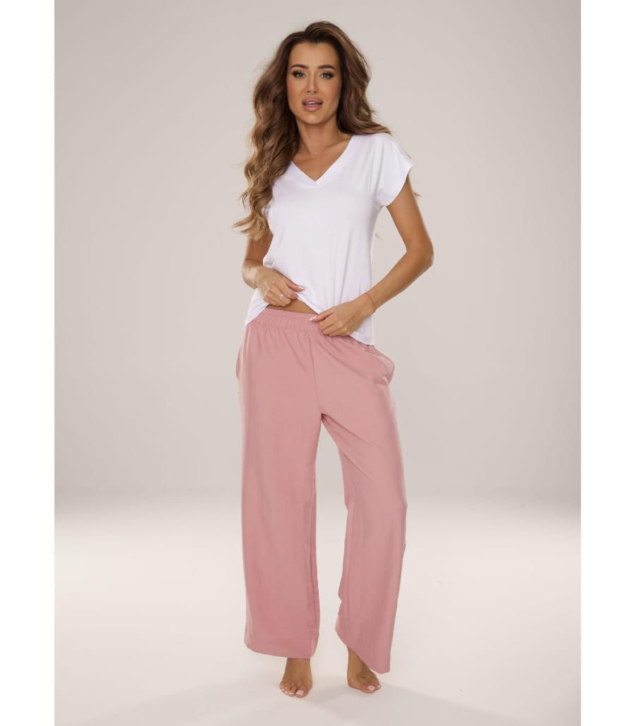 Spodnie MAEVE 875 polskiej firmy DeLafense doskonale sprawdzą się jako element piżamy lub wygodny strój do odpoczynku w domu. Model dostępny jest w kolorach różowym, czarnym oraz piaskowym, w rozmiarach S, M, L, XL, XXL. Wybierz swój ulubiony kolor i zamów już dziś, aby cieszyć się wygodą każdego dnia!