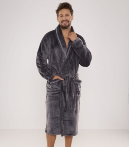 • Klasyczny szlafrok męski - długi fason z szalowym kołnierzem dla pełnego komfortu