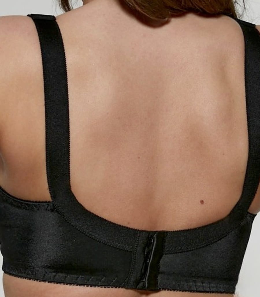 Biustonosz nie posiada fiszbin, a odpinane, regulowane ramiączka o szerokości 25 mm pozwalają na idealne dopasowanie. Zapięcie na trzy haftki o dwustopniowej regulacji gwarantuje bezpieczne i wygodne użytkowanie.