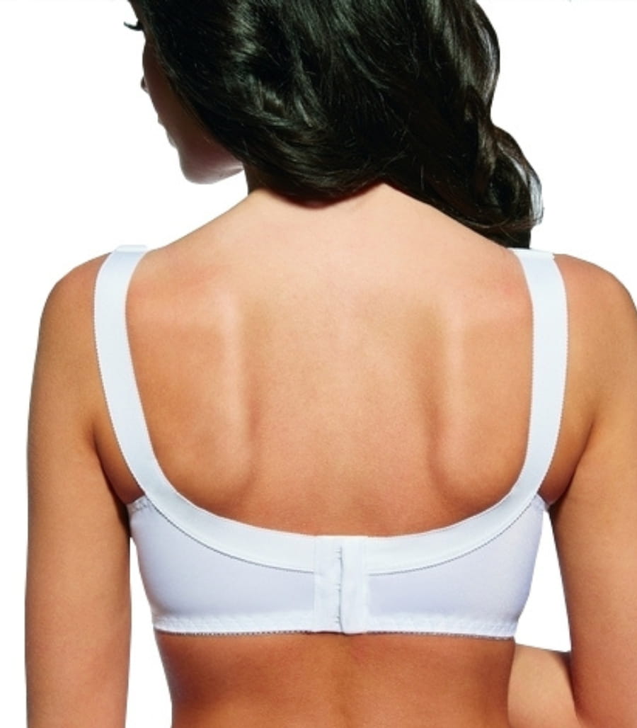Biustonosz posiada zapięcie dwurzędowe na trzy haftki o szerokości 65 mm, które dają możliwość pełnej regulacji obwodu. Nieodpinane ramiączka z regulacją z przodu zapewniają pełne dopasowanie. Metalowe elementy (haftki, regulatory, ozdoby) nie zawierają niklu.