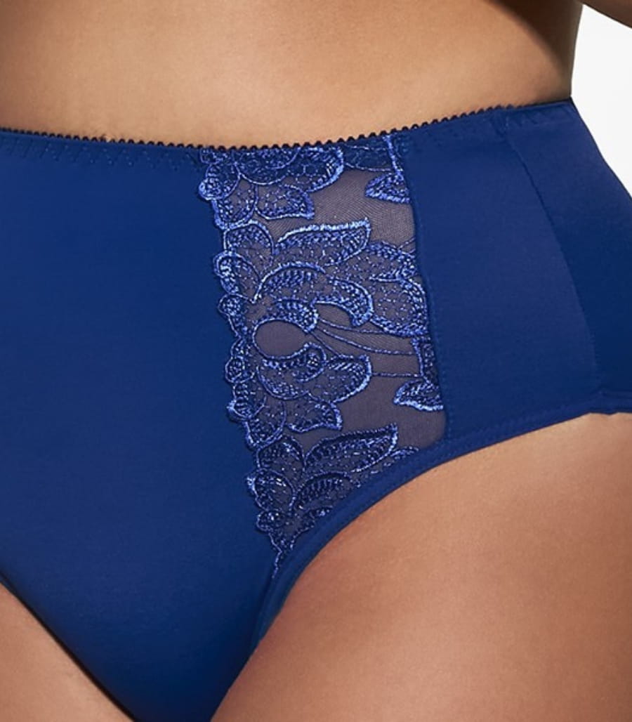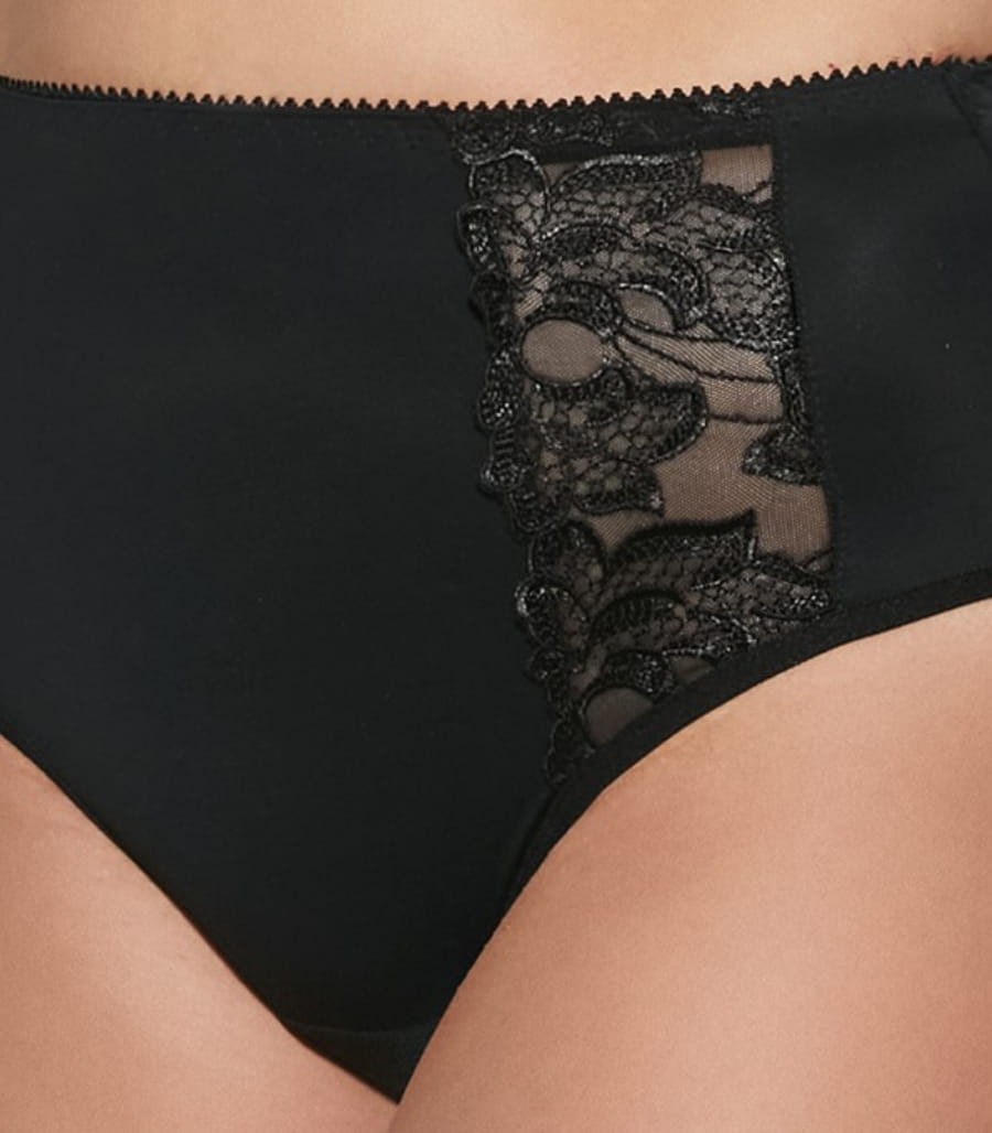 Modne figi o wyższym, klasycznym kroju to zabudowane, eleganckie majtki, które łączą wygodę i styl. Dzięki ozdobnej wstawce z haftowanego tiulu na biodrze i gładkiemu tyłowi, prezentują się subtelnie, a zarazem efektownie.