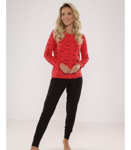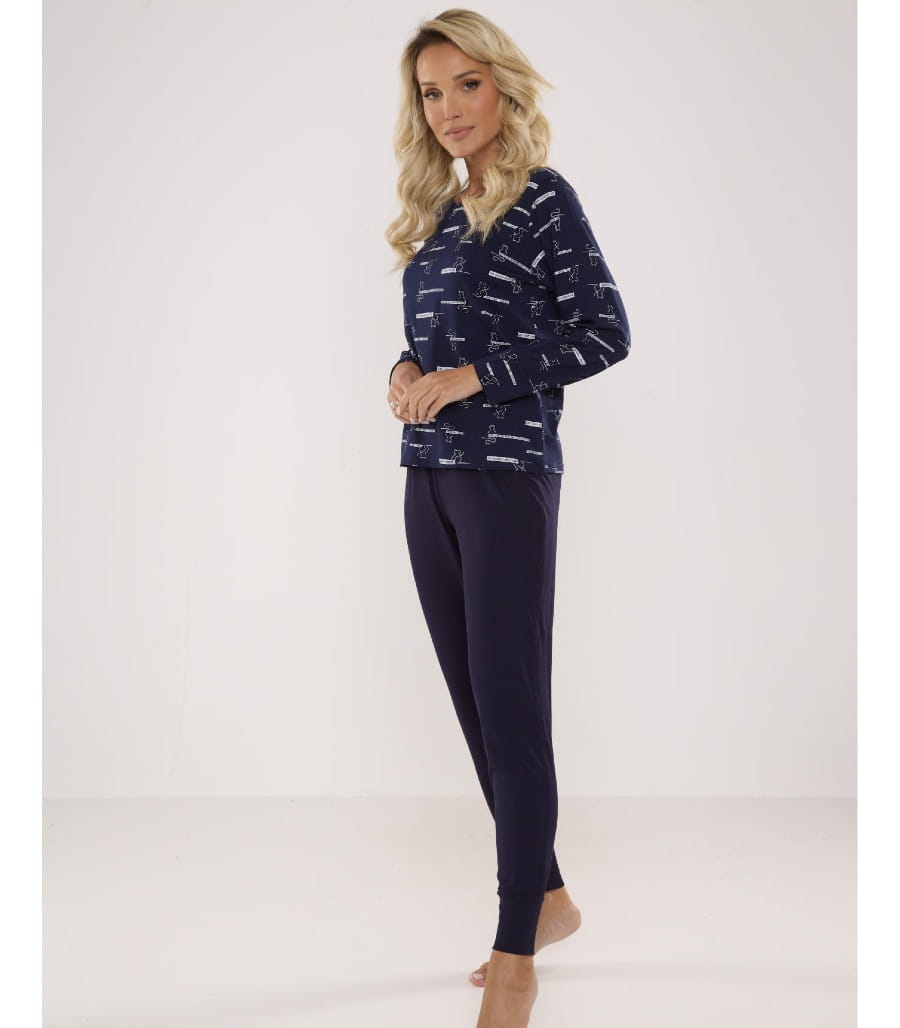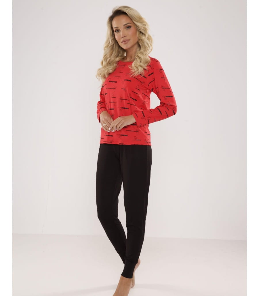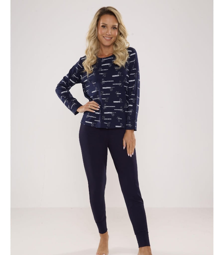 Komfortowa piżama damska składająca się z bluzki z długim rękawem oraz długich spodni