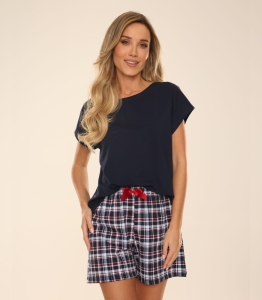 Piżama damska z krótkim rękawem i szortami w kratkę Morgan 055